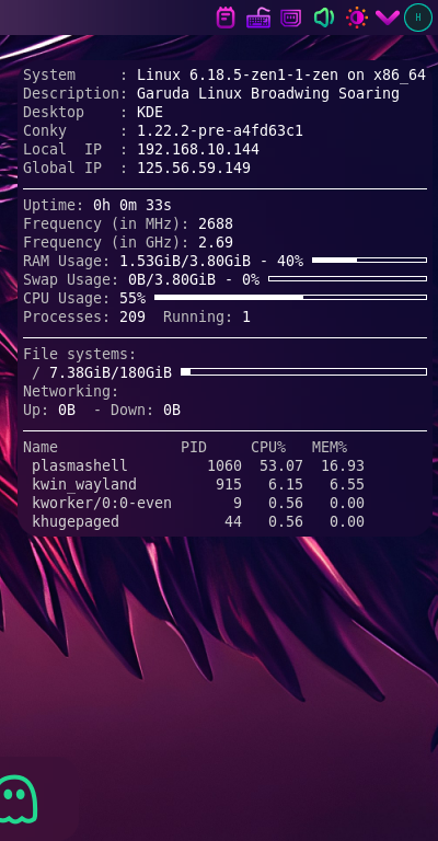 詳細は、「Conky - Wikipedia」をご参照ください。