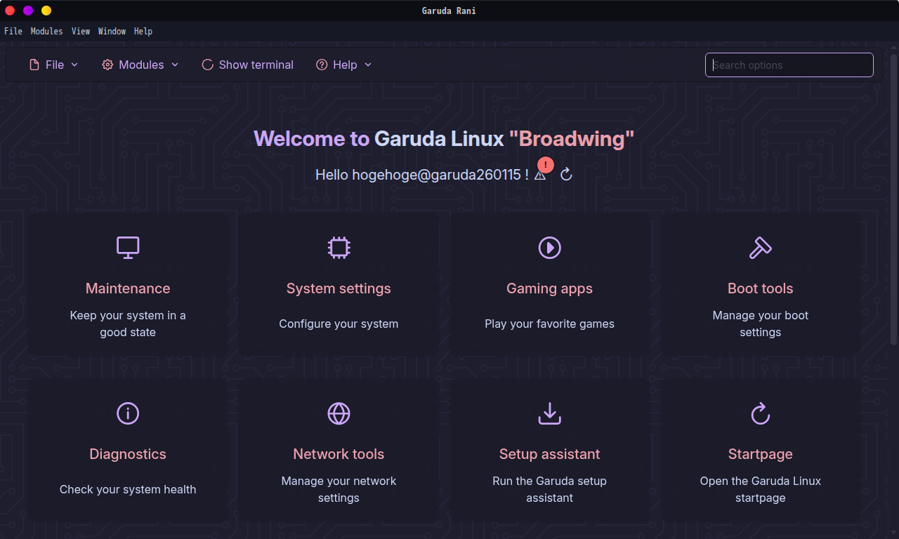 「Garuda」自体の初期操作については、「Garuda - 260115 - 共通事項」をご参照ください。