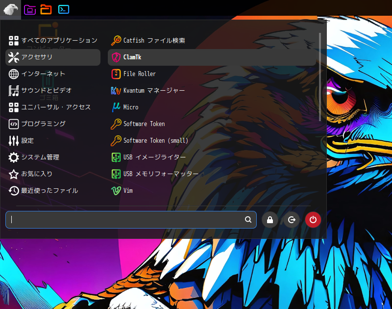 1. 概要 アンチウイルスソフトとして、「ClamTk」を使用します。 2. インストール 「Octopi」で、「clamtk」を検索して、インストールします。 3. 起動 「スタート」→「アクセサリ」→「ClamTk」