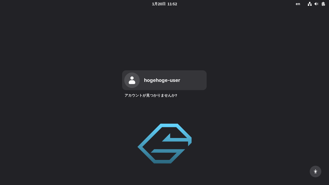 ログイン画面が表示されれば、インストールは、完了です。 「VirtualBox」上へインストールしている場合、インストールまでは、グラフィックスコントローラに「3D Enable」を設定していても問題ありません。 インストール以降は、「3D Disable」を設定しないと、画面の表示が真っ白けになるものがあります。 |