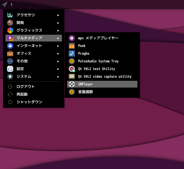 1. 概要 マルチメディアプレイヤーとして「SMPlayer」を使用します。 2. インストール 「Pamac」で、「smplayer」を検索して、インストールします。 3. 起動 「スタート」→「マルチメディア」→「SMPlayer」