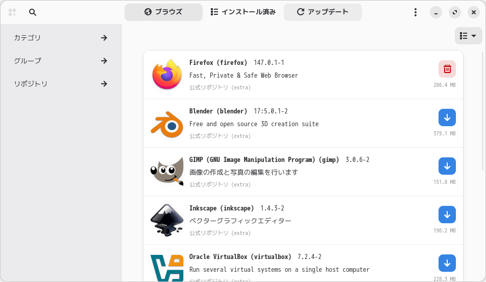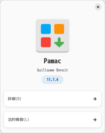 「Pamac」は、パッケージ管理フロントエンドプログラムです。