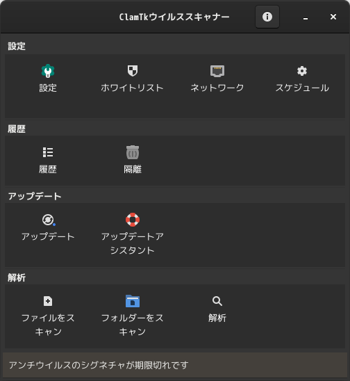 操作方法については、「デスクトップ環境構築 - 共通事項 - ClamTk」をご参照ください。
