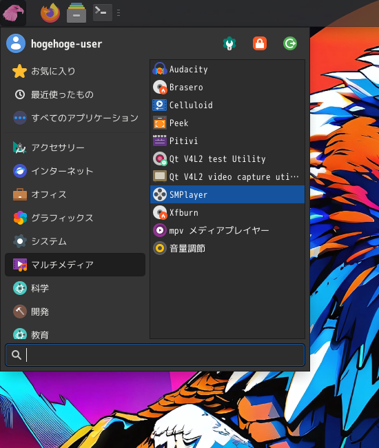1. 概要 マルチメディアプレイヤーとして「SMPlayer」を使用します。 2. インストール 「Pamac」で、「smplayer」を検索して、インストールします。 3. 起動 「スタート」→「マルチメディア」→「SMPlayer」