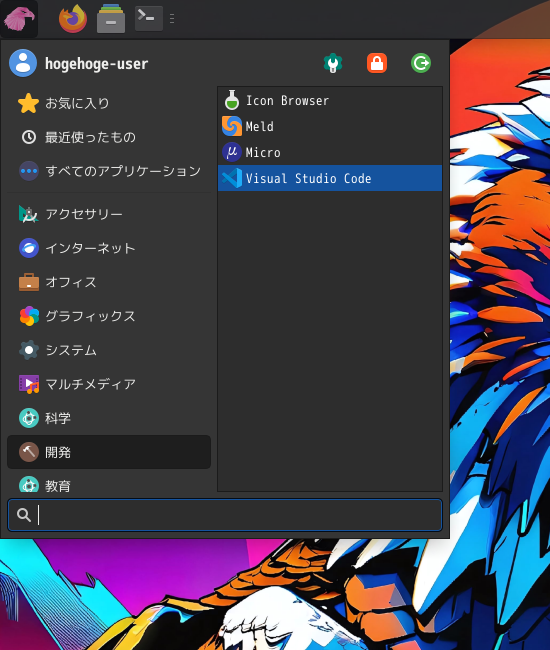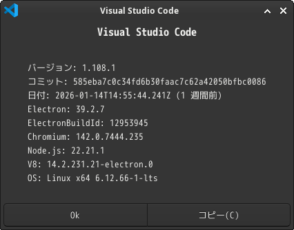 1. 概要 開発環境として、「Visual Studio Code」を使用します。 2. インストール 「Pamac」で、「visual-studio-code-bin」を検索して、インストールします。」 3. 起動 「スタート」→「開発」→「Visual Studio Code」