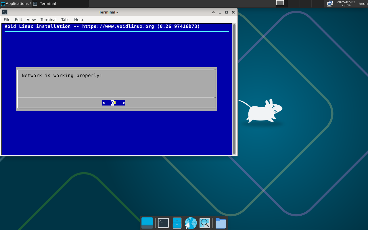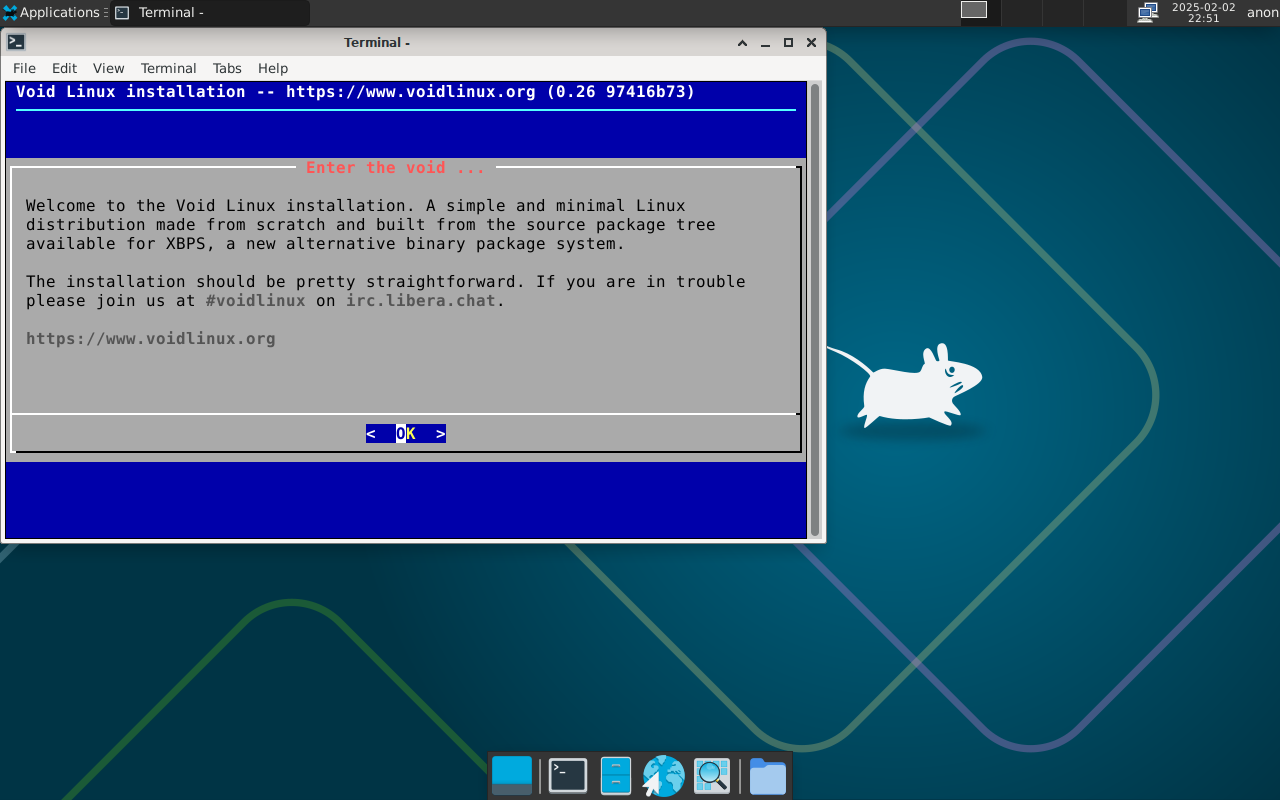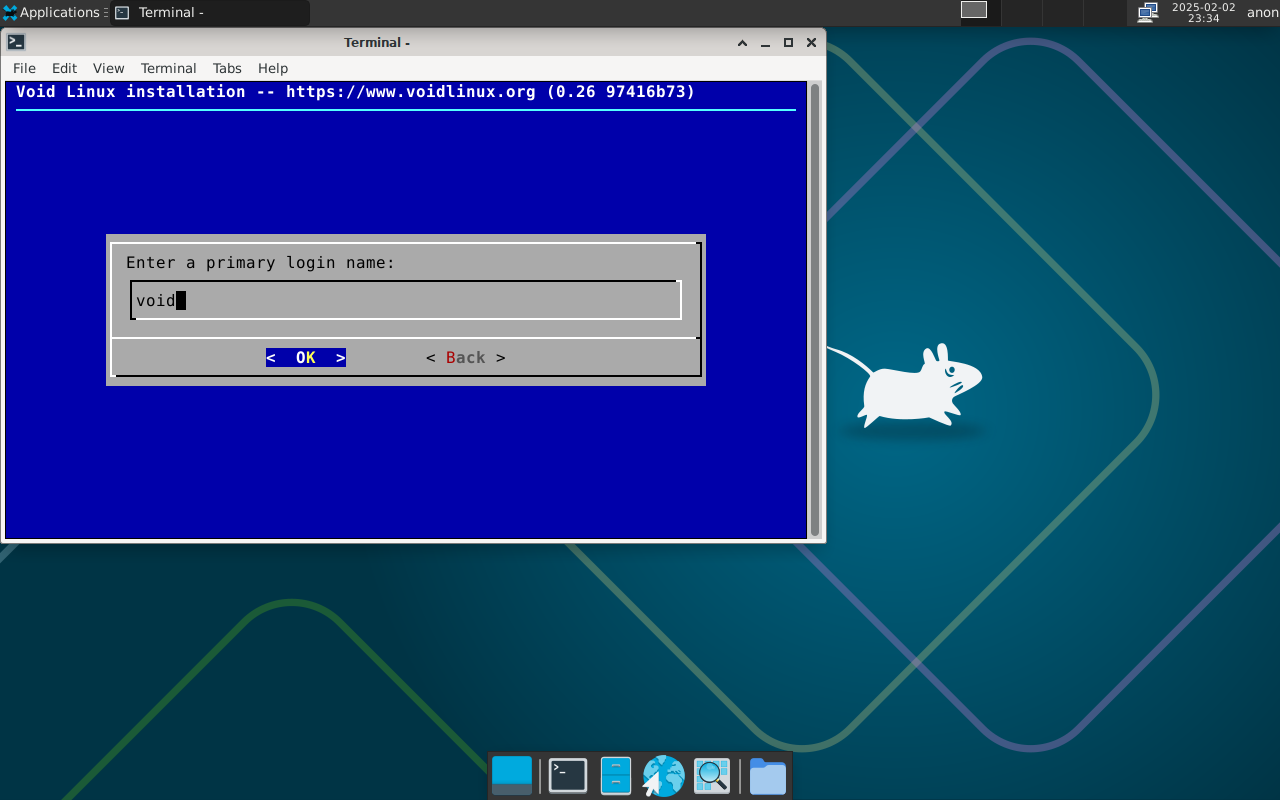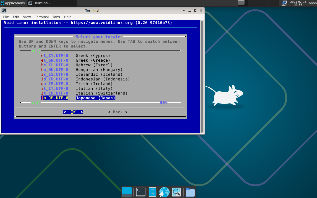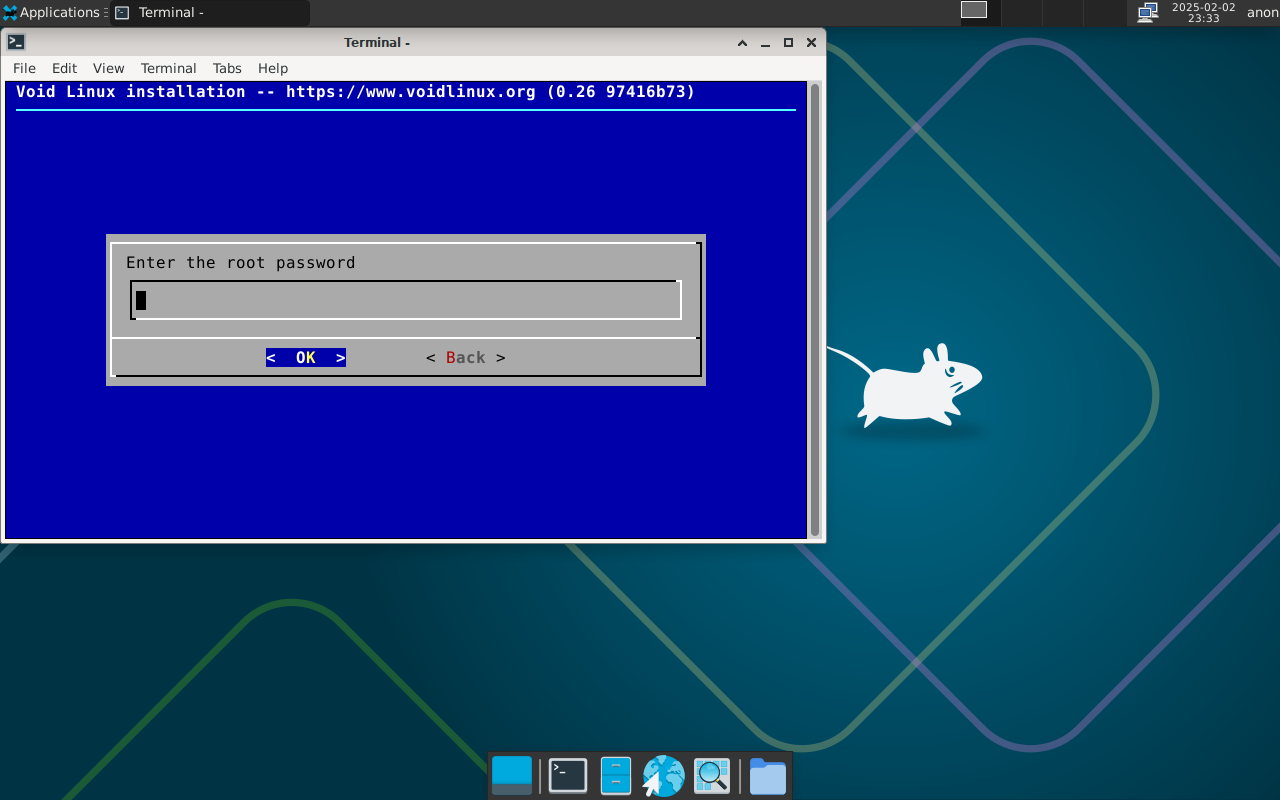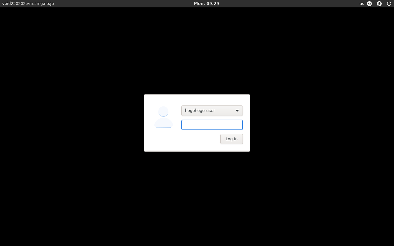 スクリーンロックを解除するには、パスワードが必要になりますが、インストール時のパスワードは「voidlinux」です。