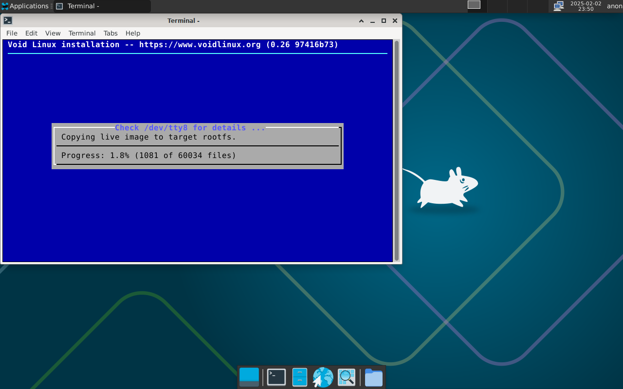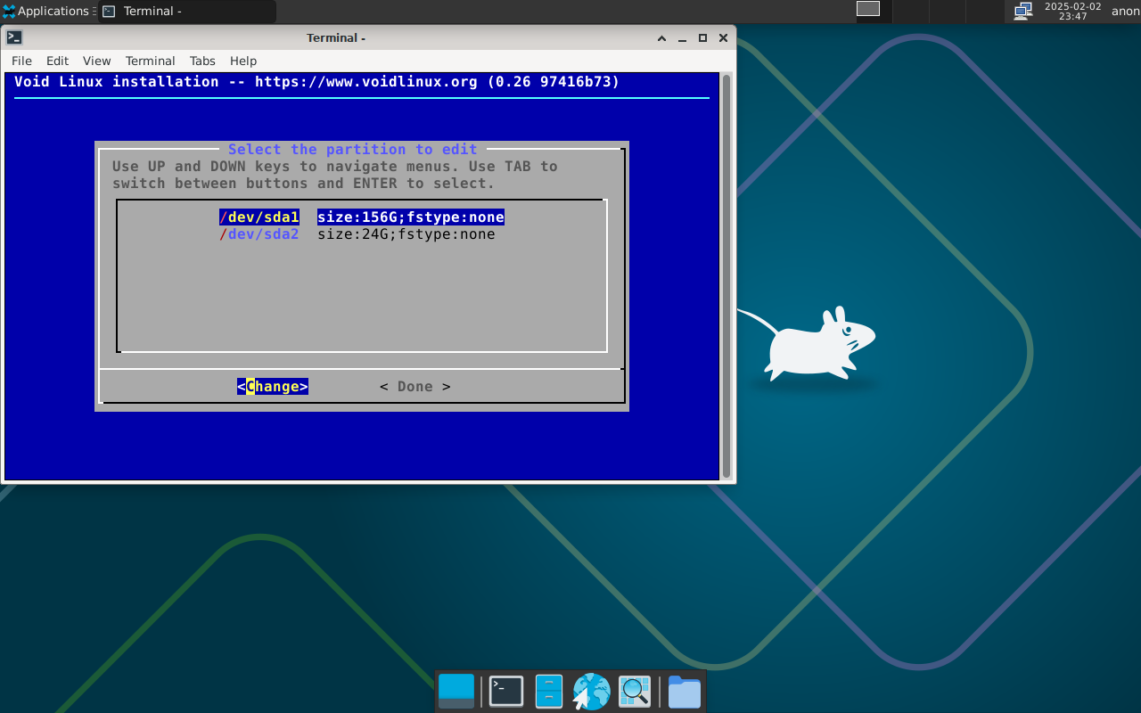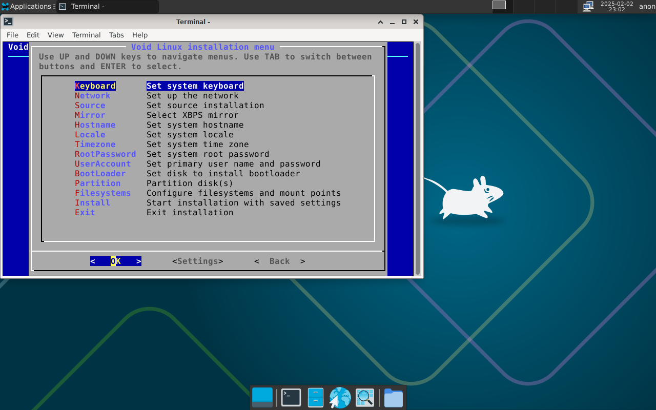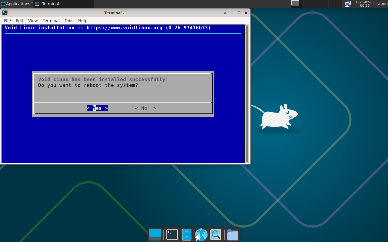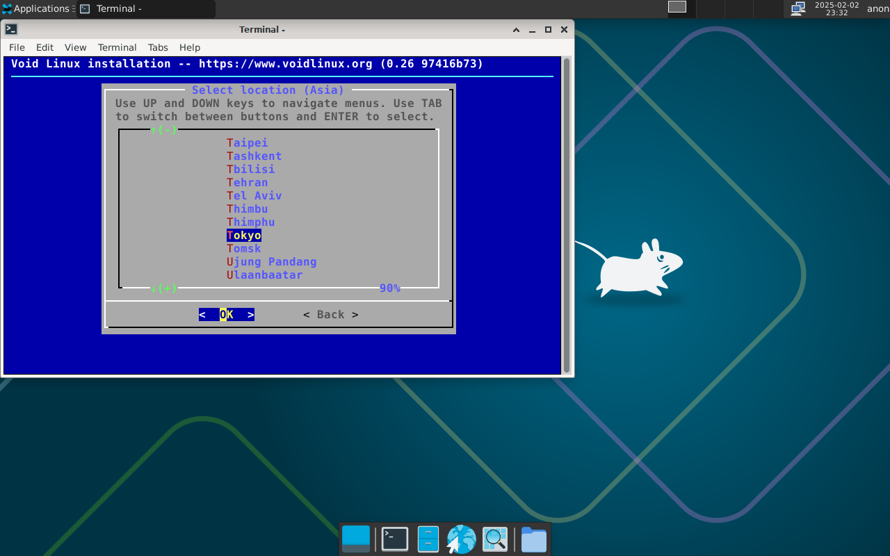 スクリーンロックを解除するには、パスワードが必要になりますが、インストール時のパスワードは「voidlinux」です。