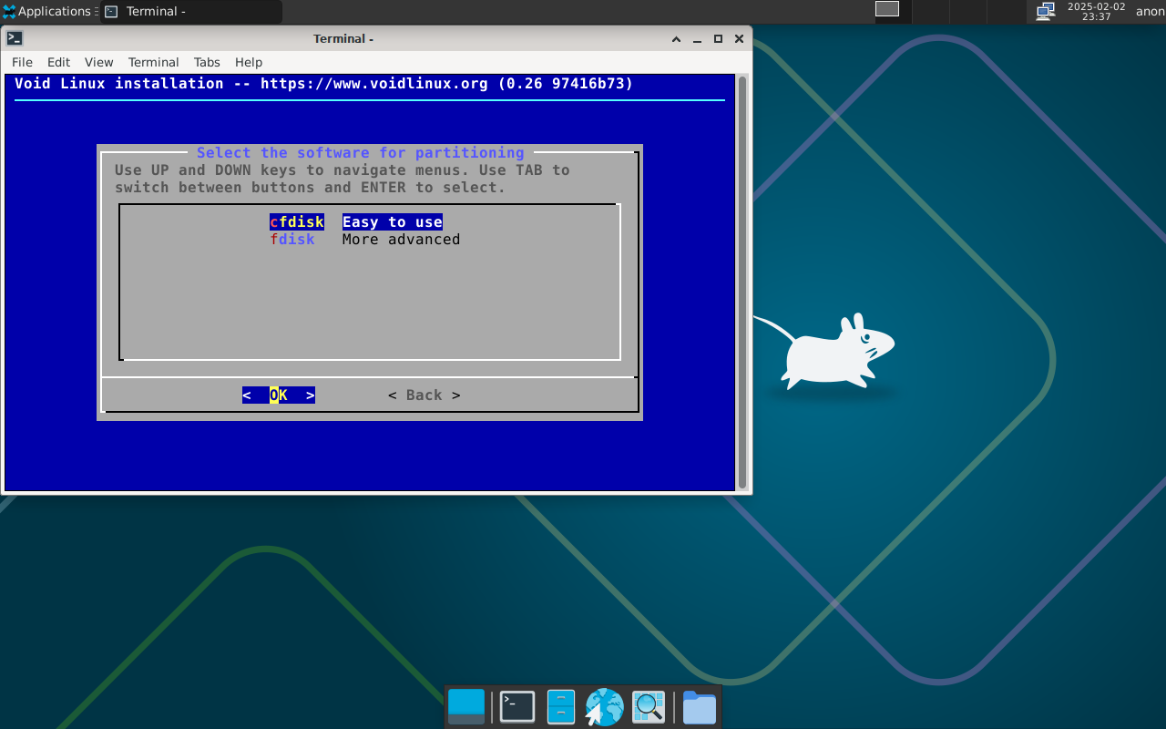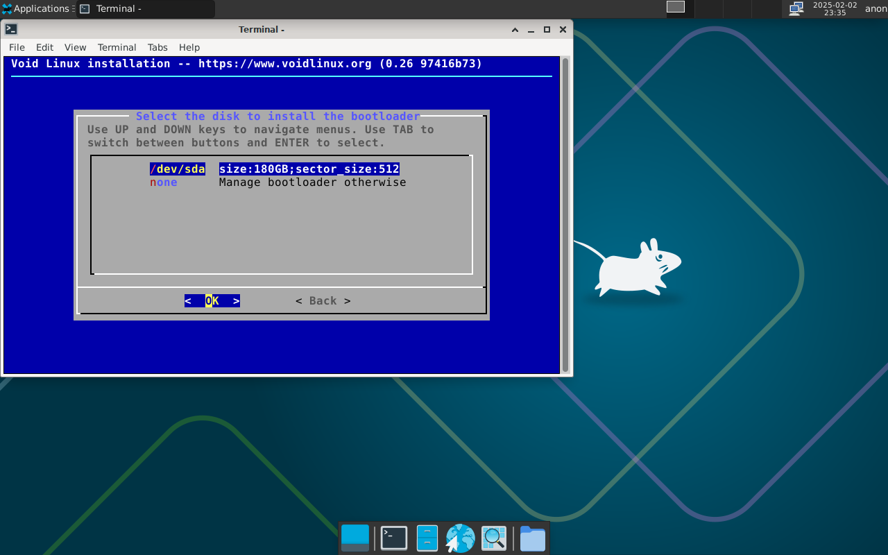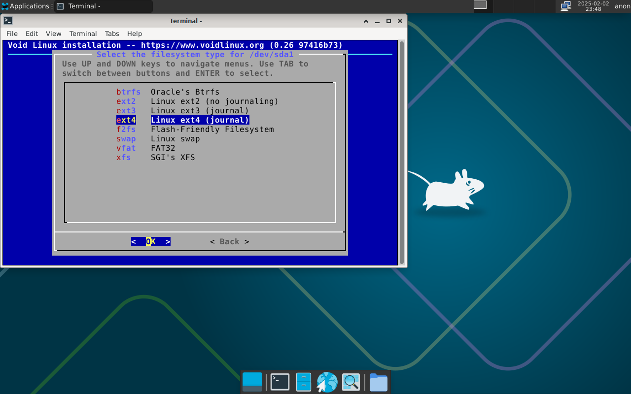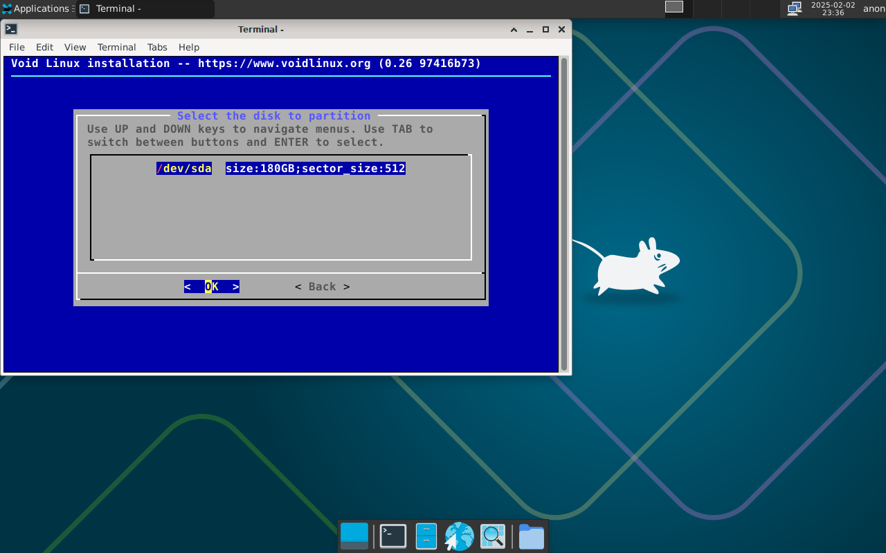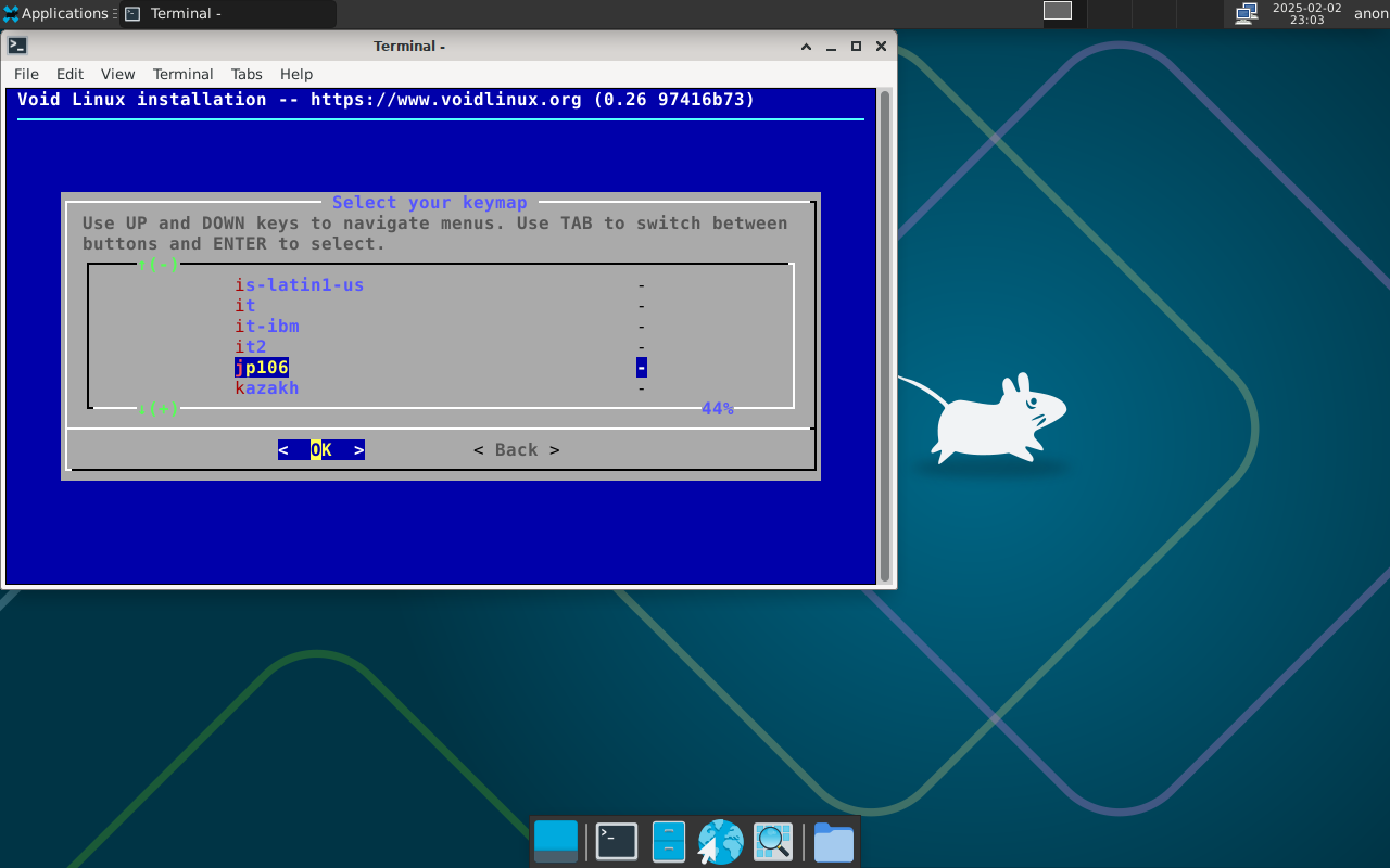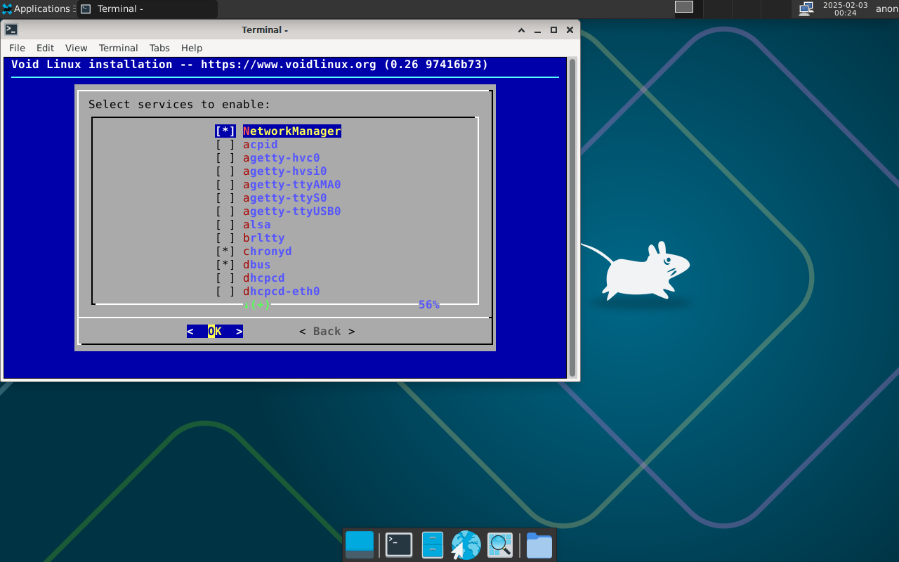 スクリーンロックを解除するには、パスワードが必要になりますが、インストール時のパスワードは「voidlinux」です。
