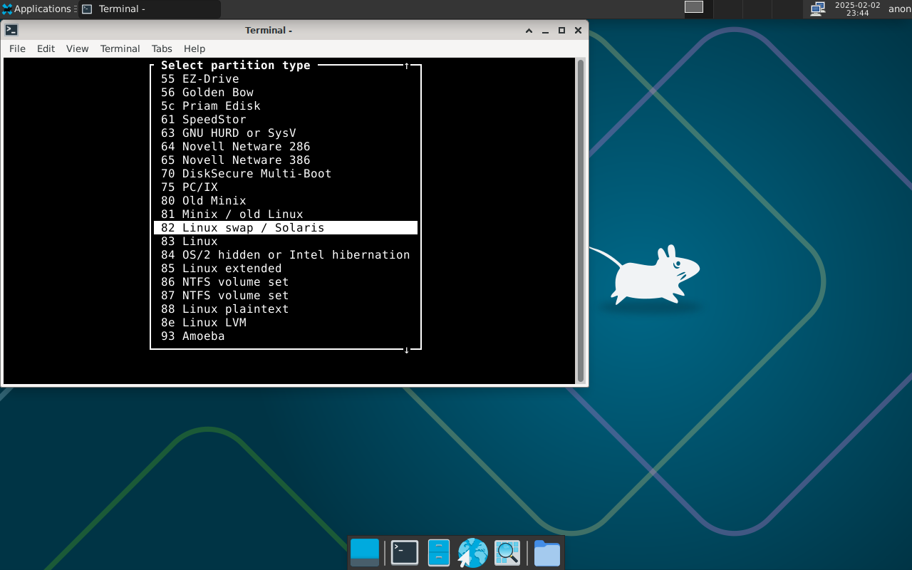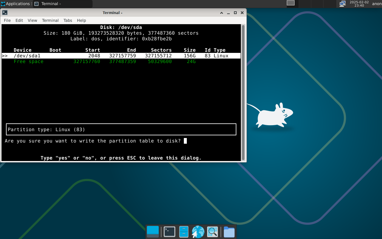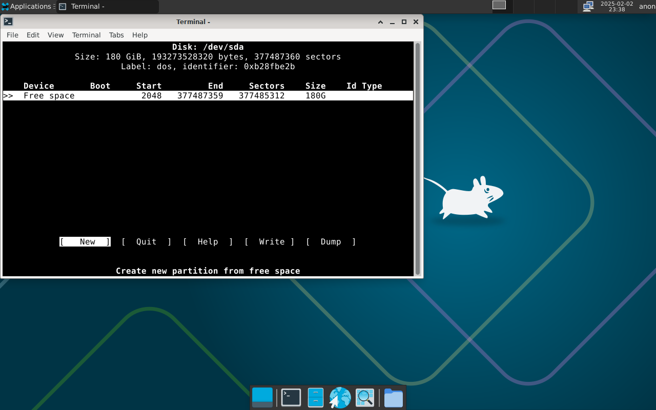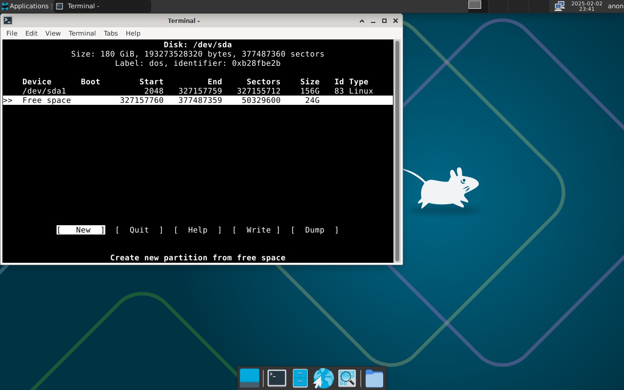 同じ要領で、残りの領域も「New」して、「swap」として「Write」します。