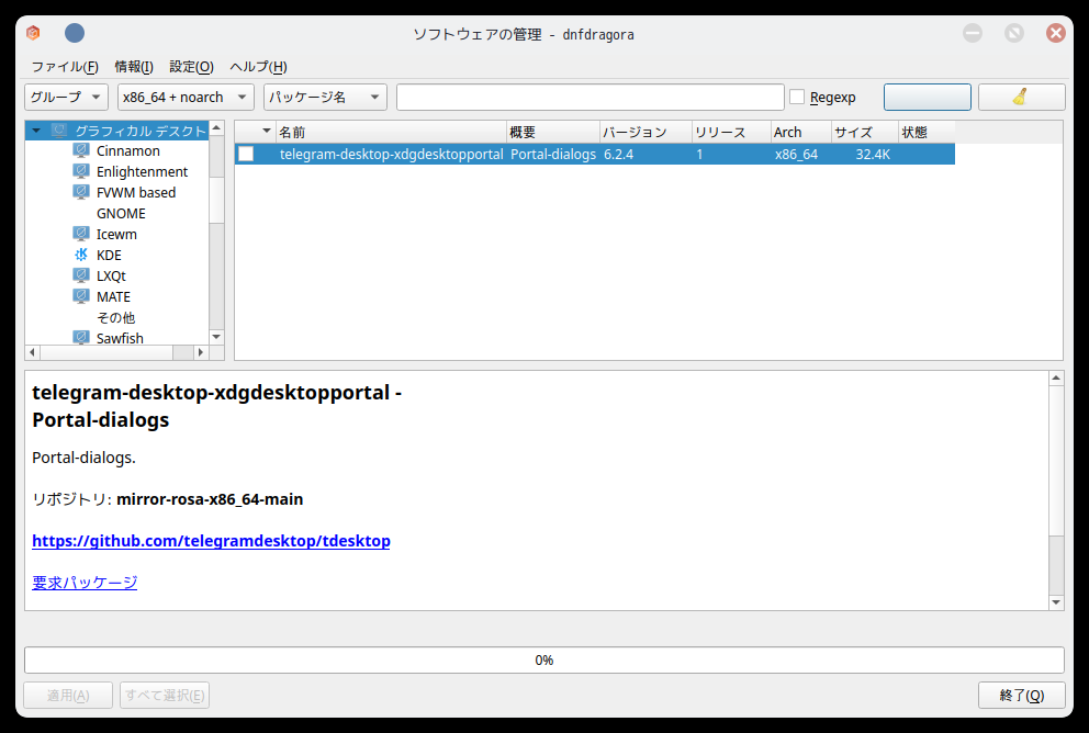 ただし、「Dnfdragora」を使うことによって、その他のデスクトップ環境をインストールして使用することができます。
