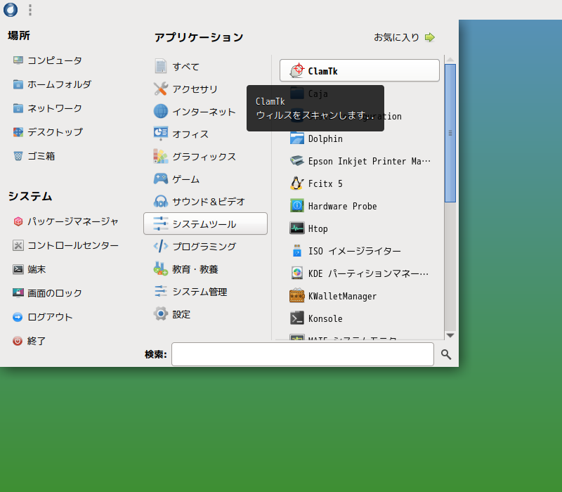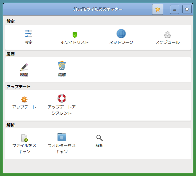 1. 概要 「ClamTk」は、「GUI」で操作するアンチウィルスソフトです。 2. インストール 「dnfdragora」で、「clamtk」を検索して、インストールします。 3. 起動 「スタート」→「システムツール」→「ClamTk」