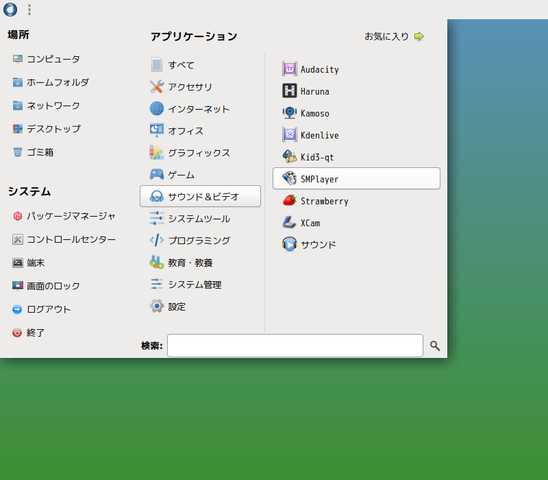 1. 概要 マルチメディアプレイヤーとして、「SMPlayer」を使用します。 2. インストール 「dnfdragora」で、「smplayer」を検索して、インストールします。 3. 起動 「スタート」→「サウンドとビデオ」→「SMPlayer」