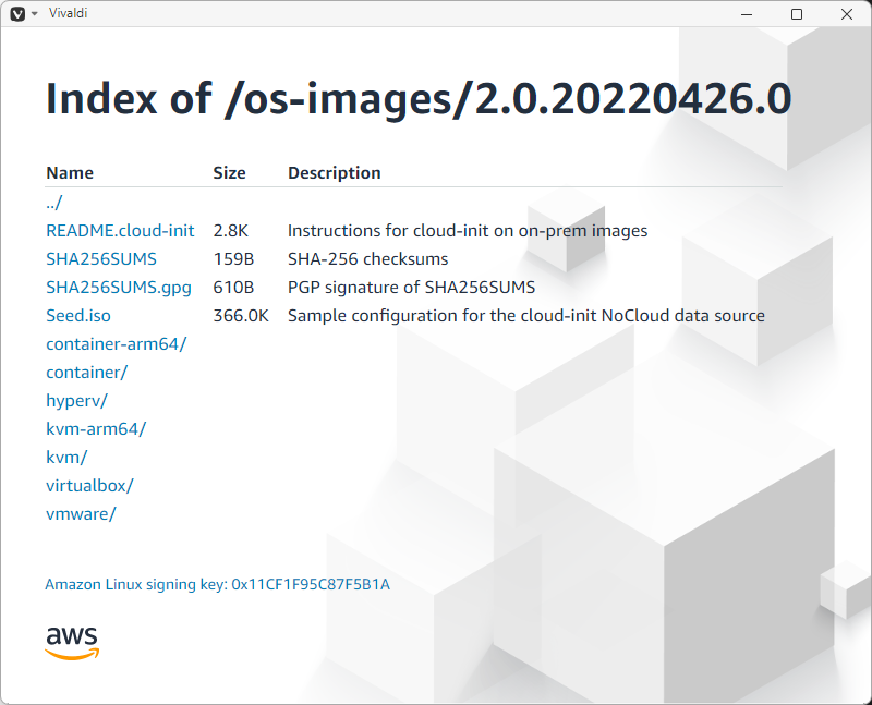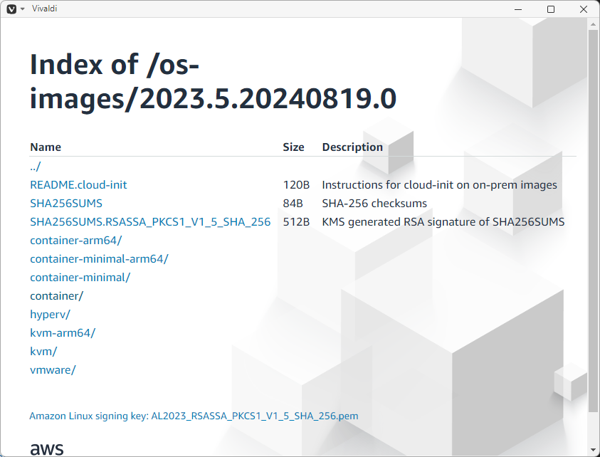 「KVM、VMware、Hyper-V で使用する Amazon Linux 2023 イメージをダウンロードする - Amazon Linux 2023」