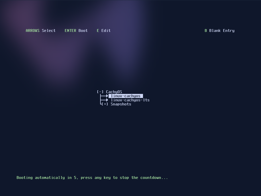 システム起動のこの画面で、e を入力します。