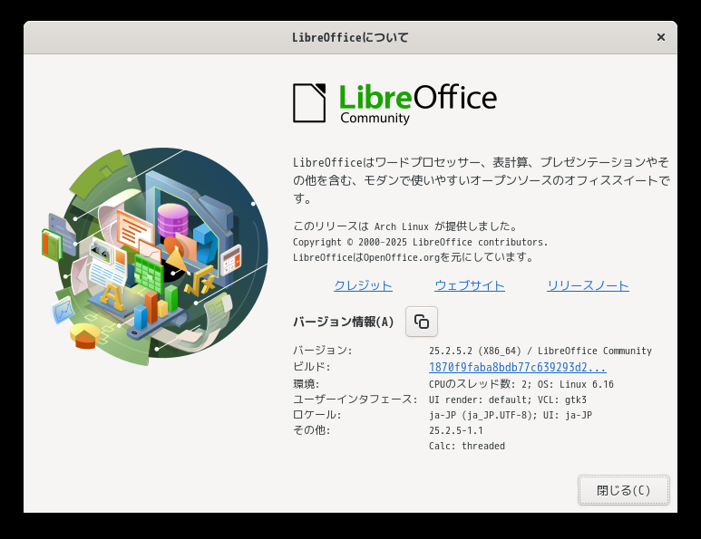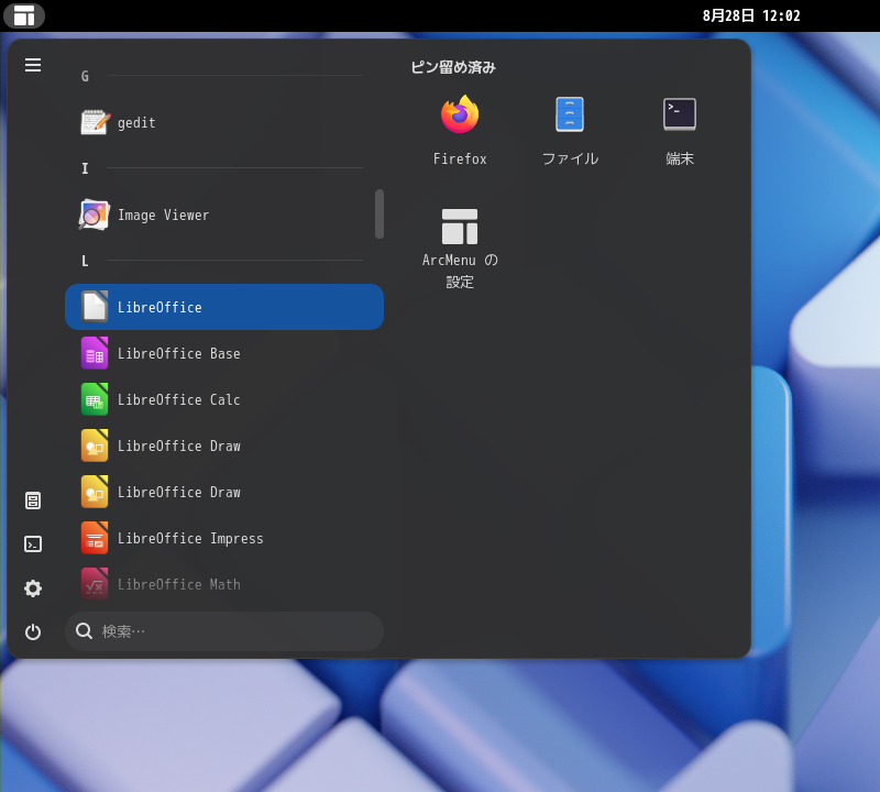 1. 概要 オフィススイートとして、「LibreOffice」を使用します。 2. インストール 「Pamac」で、「libreoffice-ja」を検索して、「libreoffice-still-ja」をインストールします。 3. 起動 「スタート」→「オフィス」→「LibreOffice」