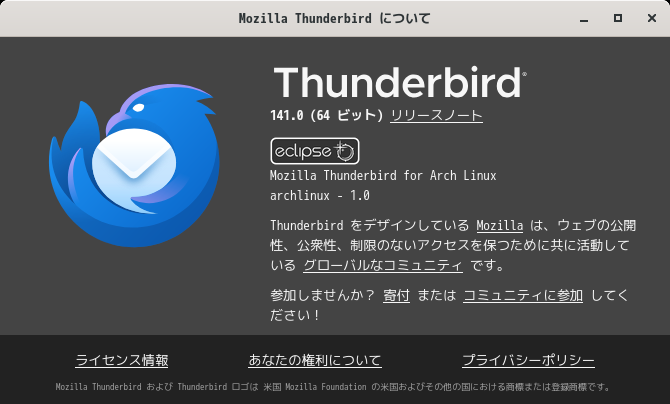 CachyOS - 250824 - BUDGIE - メールクライアント Thunderbird