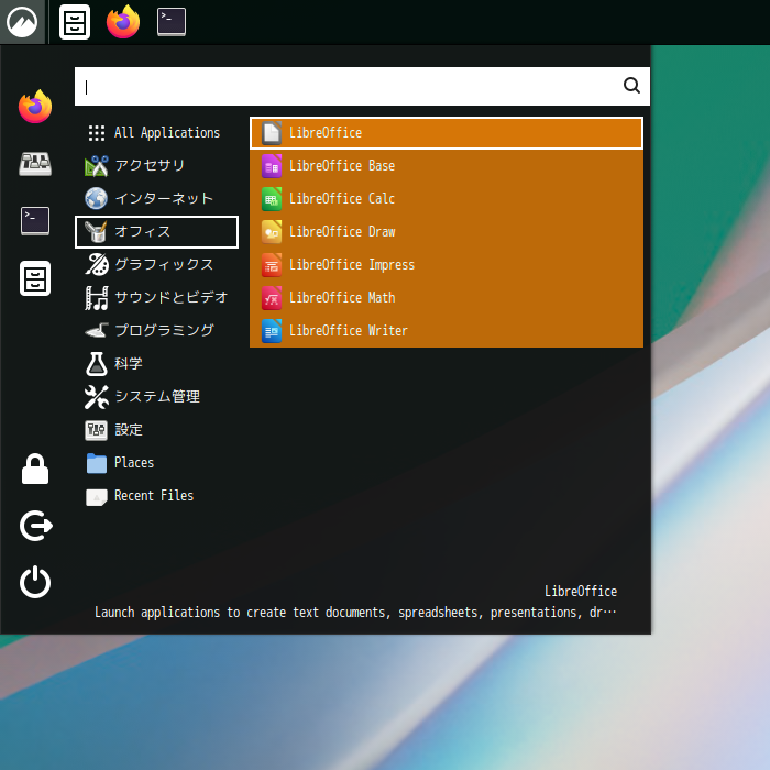 1. 概要 オフィススイートとして、「LibreOffice」を使用します。 2. インストール 「Pamac」で、「libreoffice-ja」を検索して、「libreoffice-still-ja」をインストールします。 3. 起動 「スタート」→「オフィス」→「LibreOffice」