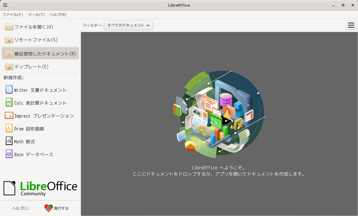 操作方法等については「オフィススィート LibreOffice」をご参照ください。
