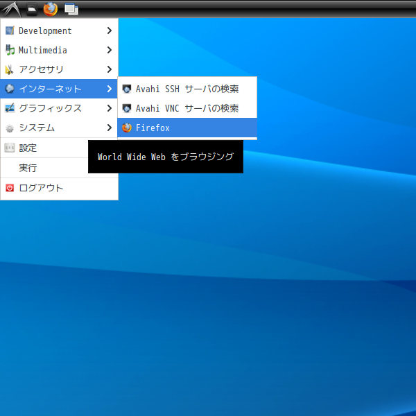 1. 概要 ブラウザとして、「Firefox」を使用します。 「Firefox」は、デフォルトでインストールされています。 2. 起動 「スタート」→「インターネット」→「Firefox」