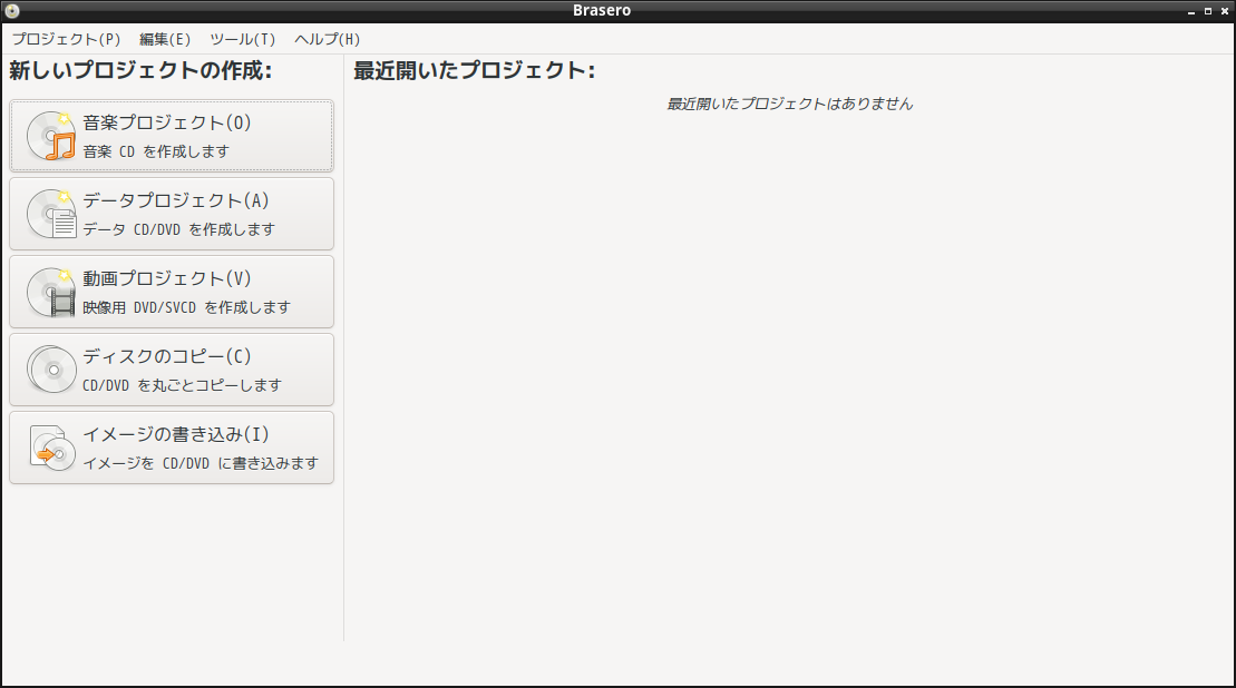 1. 概要 光ディスクライティングソフトとして、「Brasero」を使用します。 2. インストール 「Pamac」で、「brasero」を検索して、インストールします。 3. 起動 「スタート」→「Multimedia」→「Brasero」