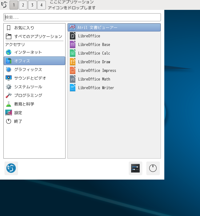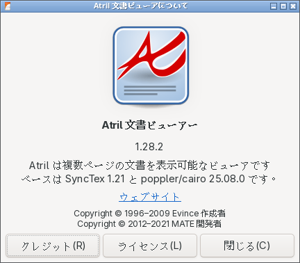 1. 概要 ドキュメントビューアとして、「Atril」を使用します。 「Atril」は、デフォルトでインストールされています。 2. インストール 「Pamac」で、「atril」を検索して、インストールします。 3. 起動 「スタート」→「オフィス」→「Atril 文書ビューア」