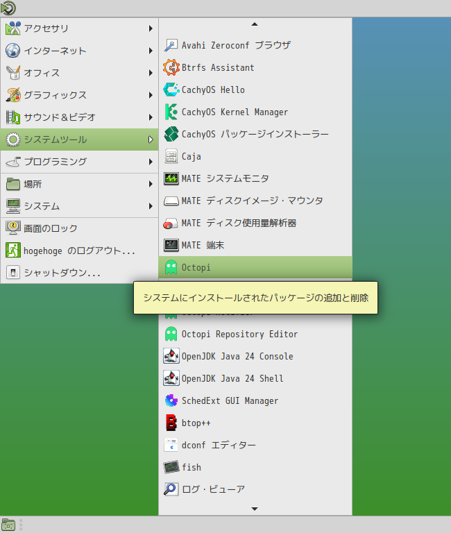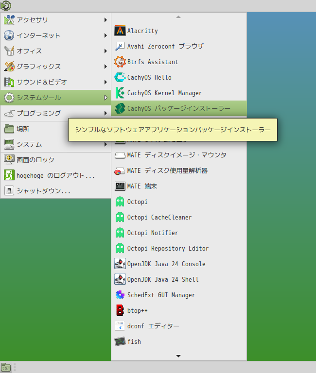 「スタート」→「システムツール」→「CachyOS パッケージインストーラ」