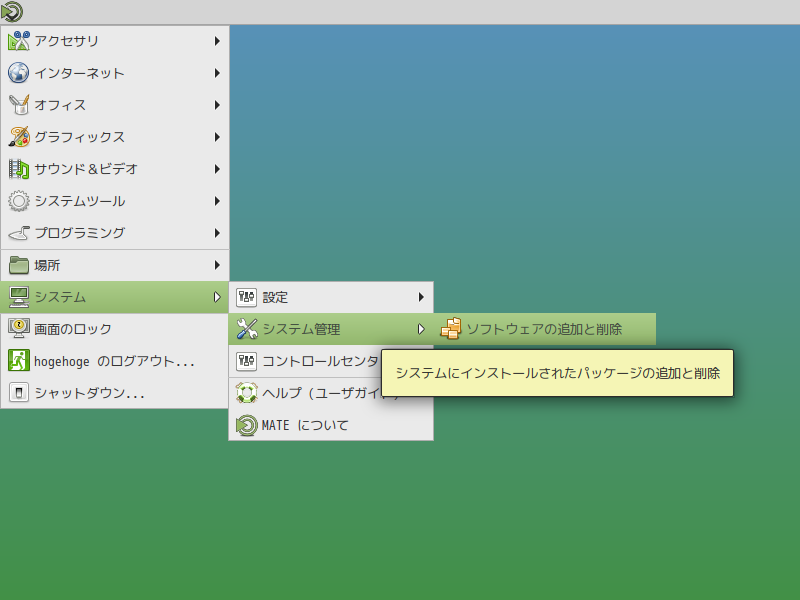 「スタート」→「システム」→「システム管理」→「ソフトウェアの追加と削除」