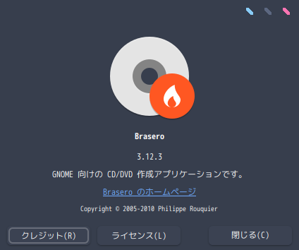 1. 概要 光ディスクライティングソフトとして、「Brasero」を使用します。 2. インストール 「Pamac」で、「brasero」を検索して、インストールします。 3. 起動 「スタート」→「マルチメディア」→「Brasero」