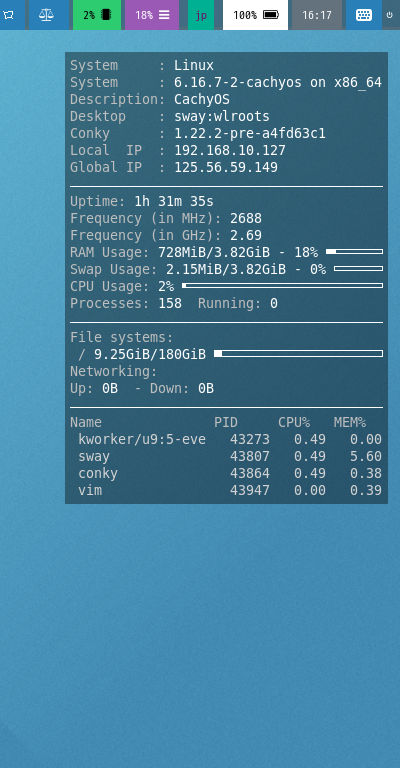 「conky」に関する説明は、「Conky - Wikipedia」をご参照ください。