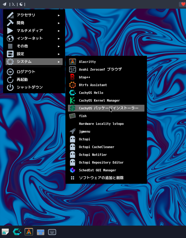 「スタート」→「設定」→「CachyOS パッケージインストーラ」