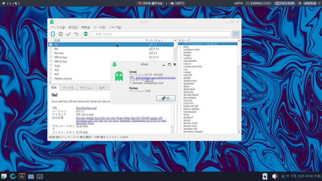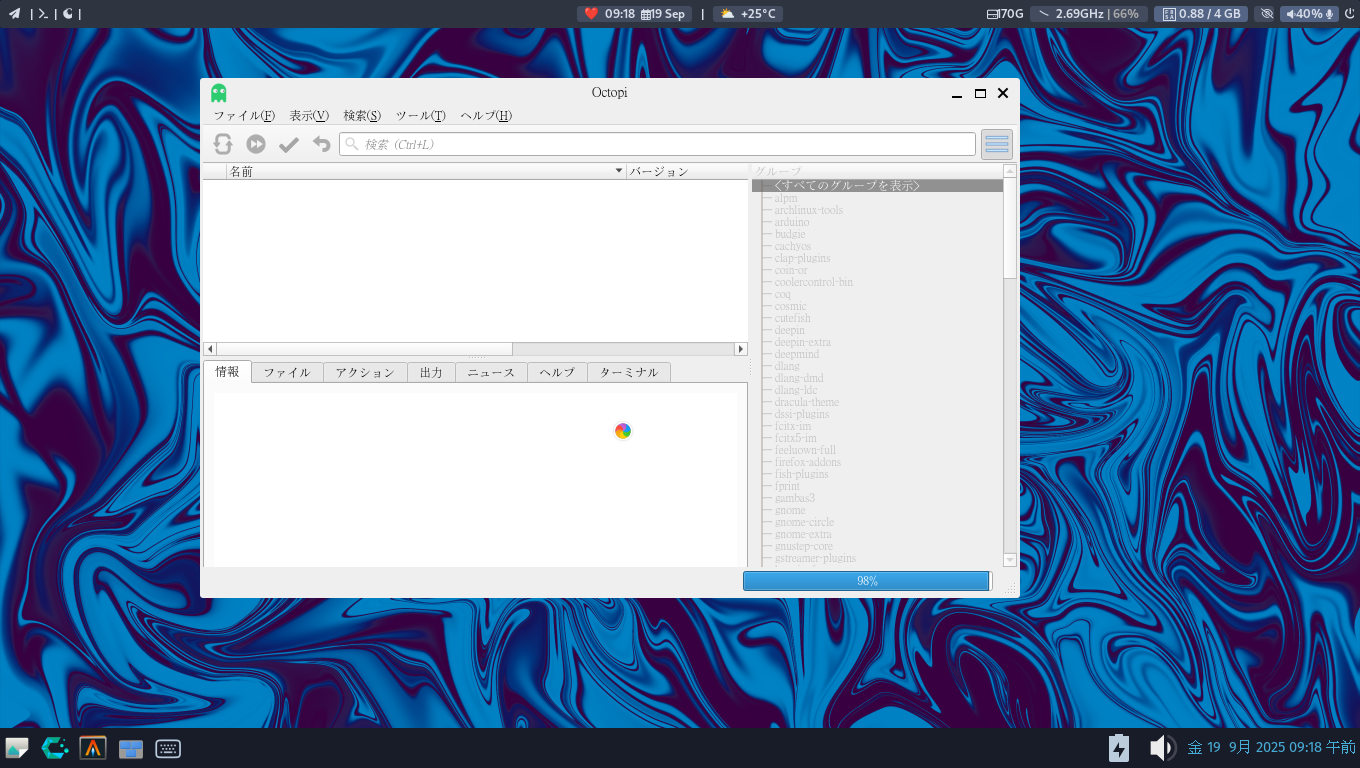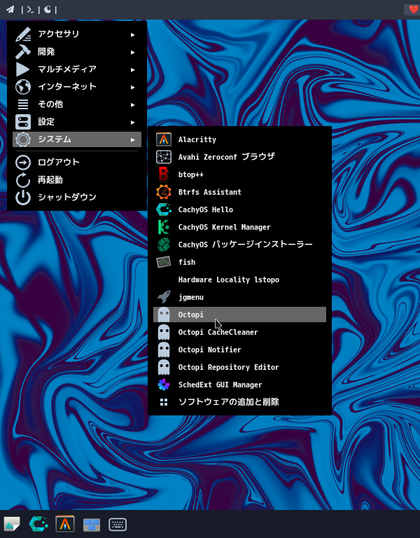 パッケージ管理フロントエンドとして「CachyOS Package Installer」と「Octopi」がデフォルトでインストールされています。