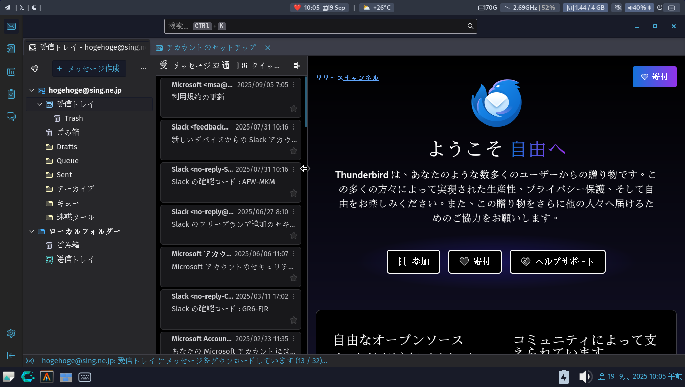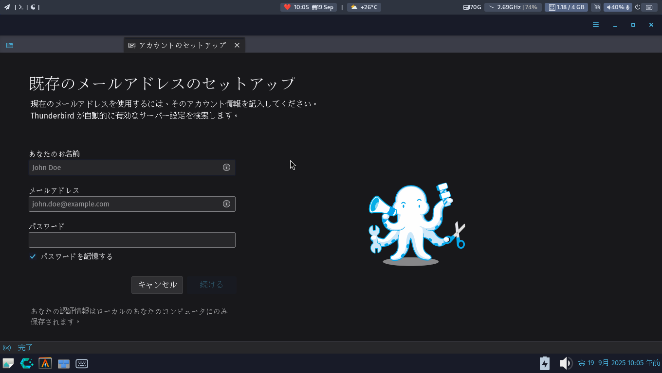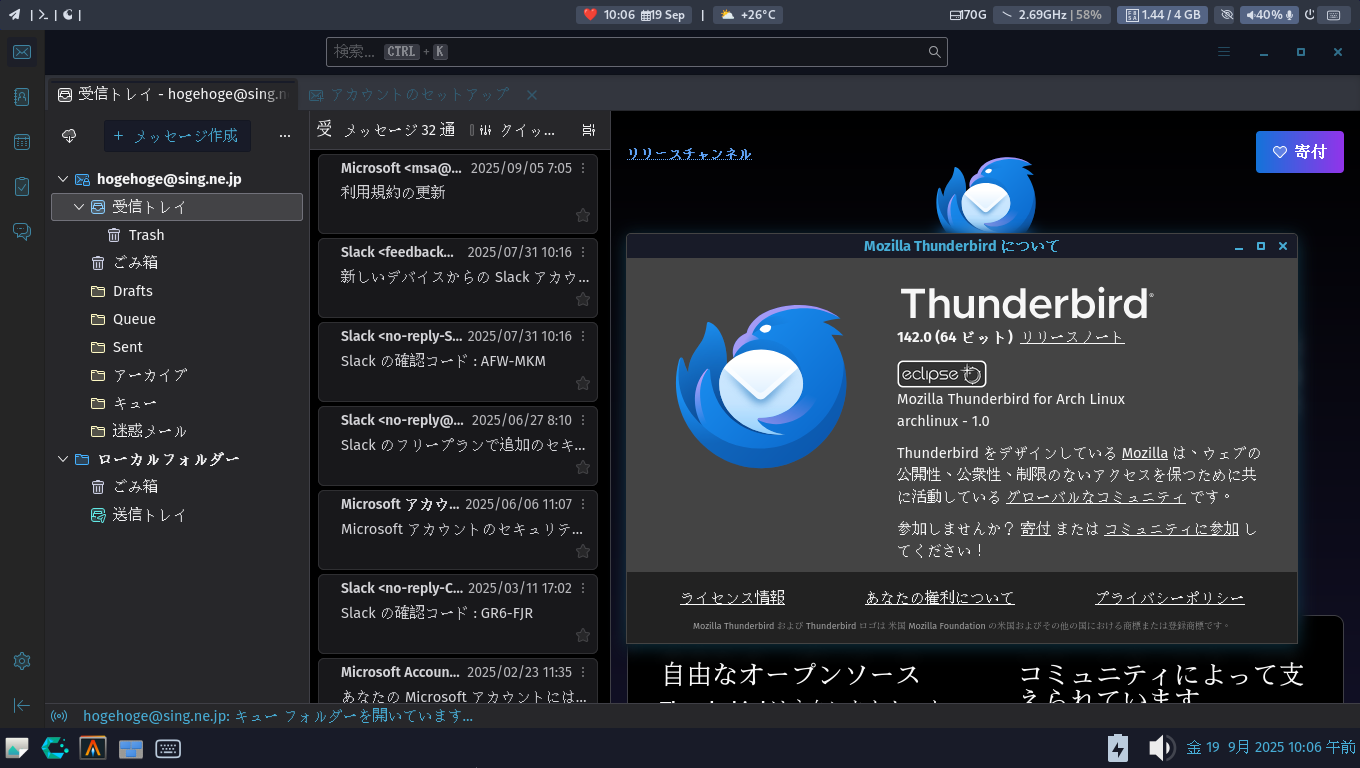 CachyOS - 250824 - WayFire - メールクライアント Thunderbird