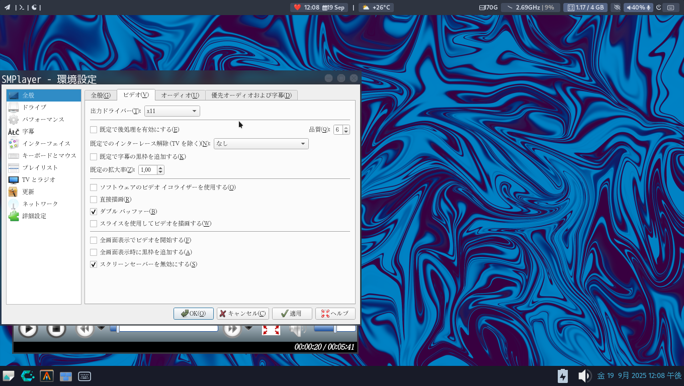 「WayLand」上で、「SMPlayer」で動画の表示を有効にするには。