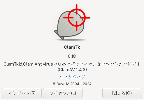 1. 概要 「ClamTk」は、「GUI」で操作するアンチウィルスソフトです。 2. インストール 「root」ユーザ権限で。 pacman -S clamtk Enter を 2回、ぶったたきます。 3. 起動 「スタート」→「アクセサリ」→「ClamTk」