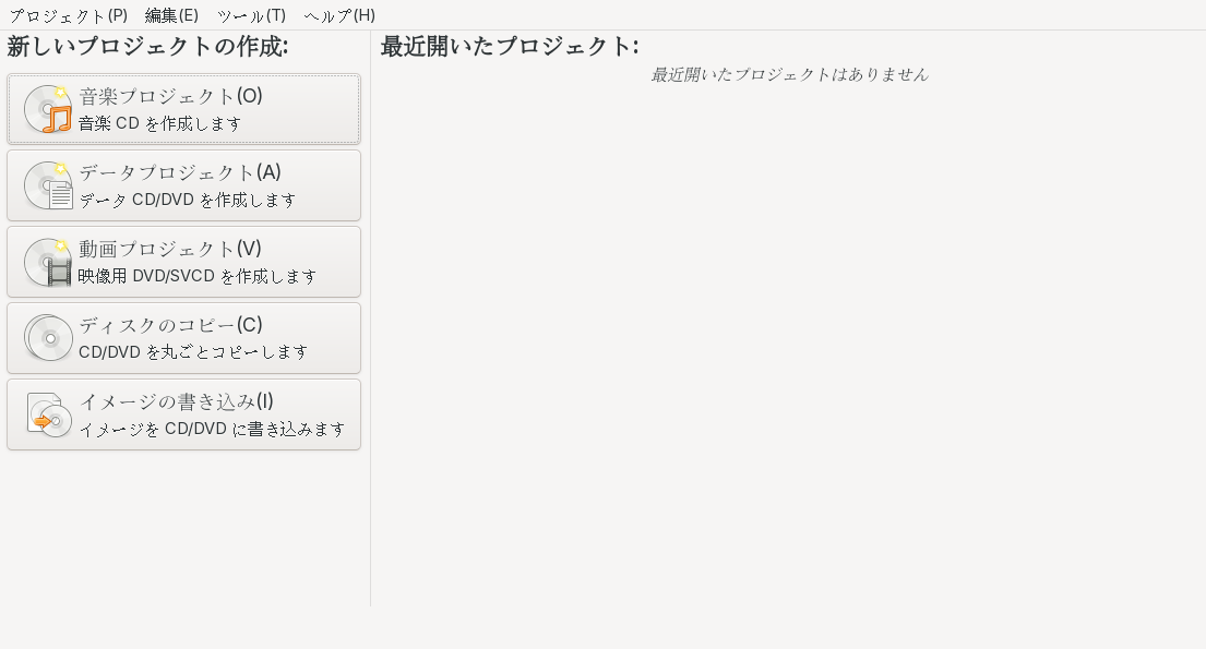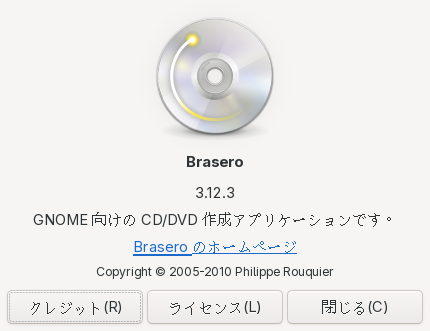 1. 概要 光ディスクライティングソフトとして、「Brasero」を使用します。 2. インストール 「root」ユーザ権限で。 yes | pacman -S brasero 3. 起動 「スタート」→「マルチメディア」→「Brasero」