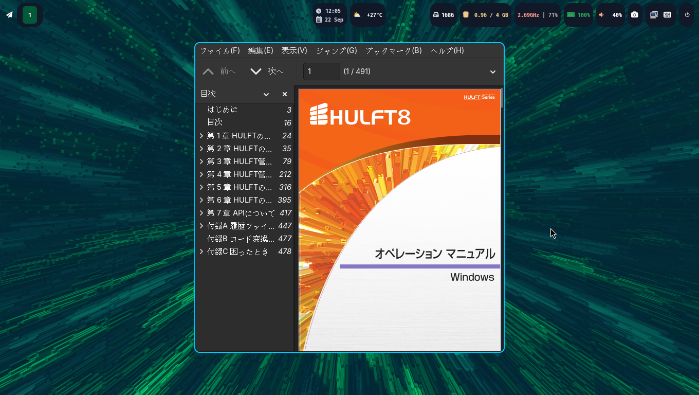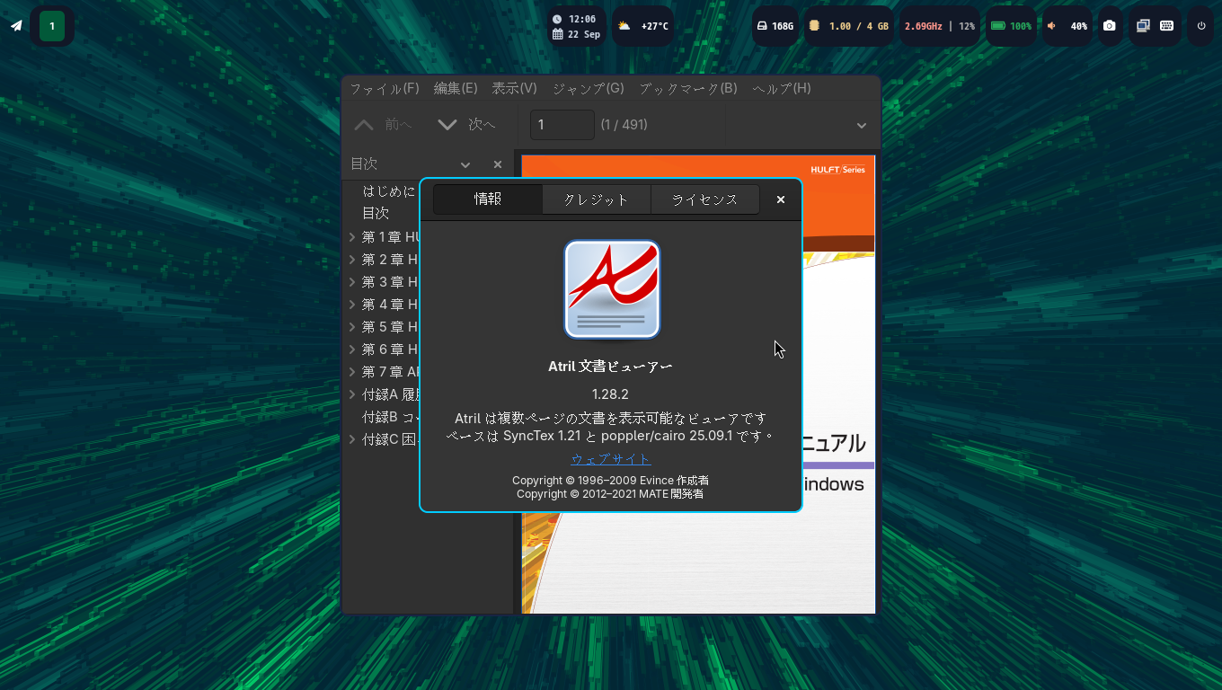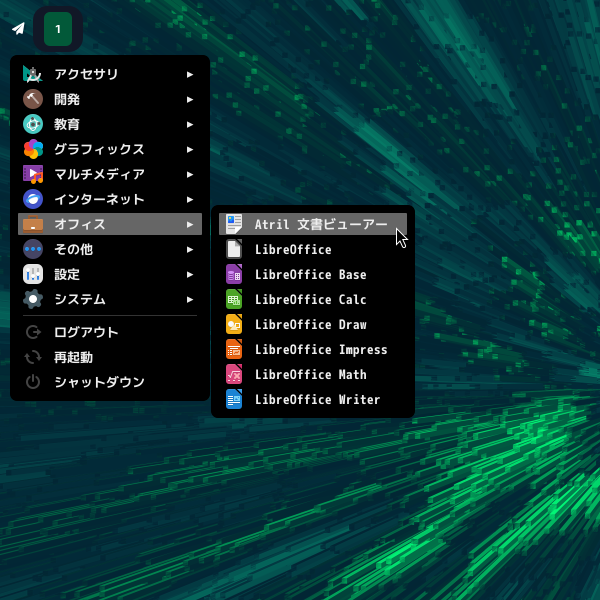 1. 概要 ドキュメントビューアとして、「Atril」を使用します。 2. インストール 「Pamac」で、「atril」を検索して、インストールします。 3. 起動 「スタート」→「オフィス」→「Atril 文書ビューア」