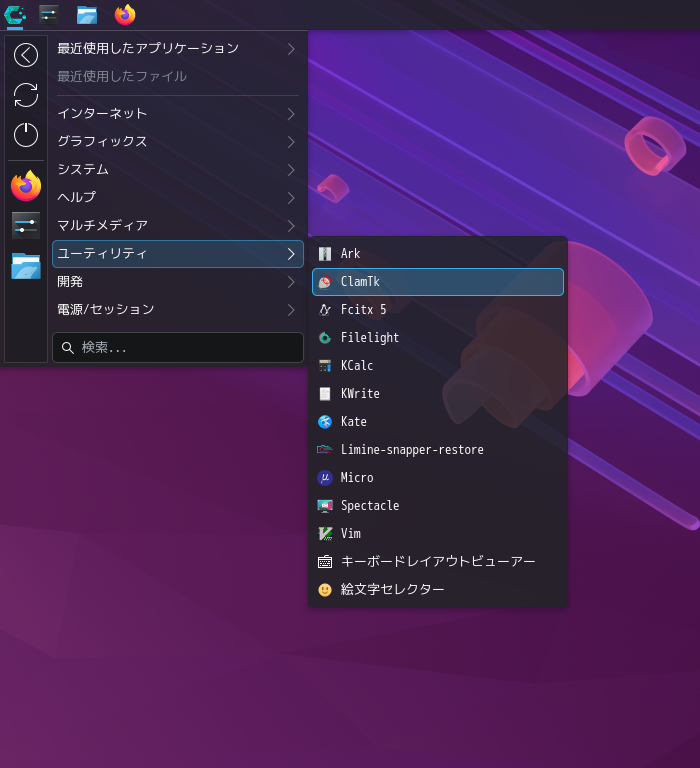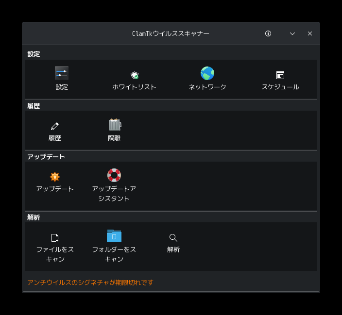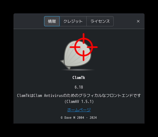 1. 概要 「ClamTk」は、「GUI」で操作するアンチウィルスソフトです。 2. インストール 「Pamac」で、「clamtk」を検索してインストールします。 3. 起動 「スタート」→「ユーティリティ」→「ClamTk」