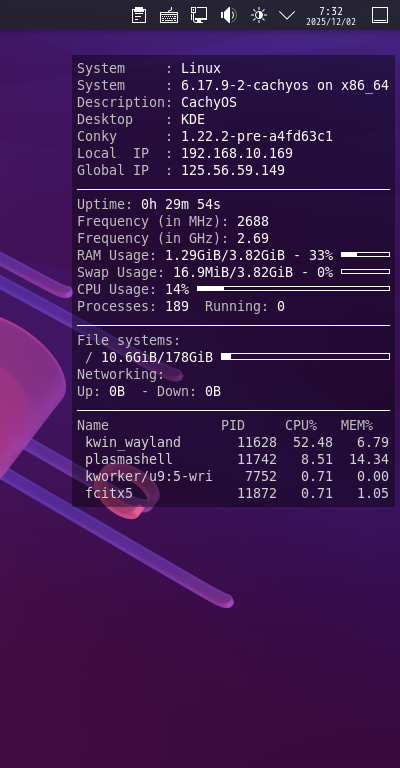 CachyOS - 251129 - KDE - タスクマネージャー Conky