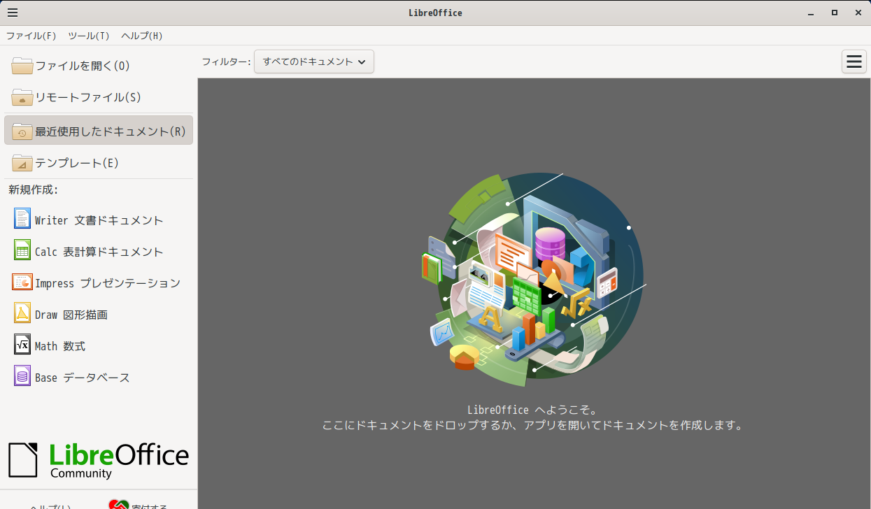 操作方法等については「オフィススィート LibreOffice」をご参照ください。