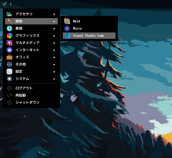「スタート」→「開発」→「Visual Studio Code」