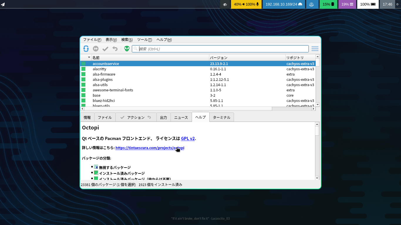 起動直後の状態です。 2025年12月17日の時点で、下記のバージョンでした。 操作方法等は「Linux - 共通事項 - パッケージ管理フロントエンド」をご参照ください。 |