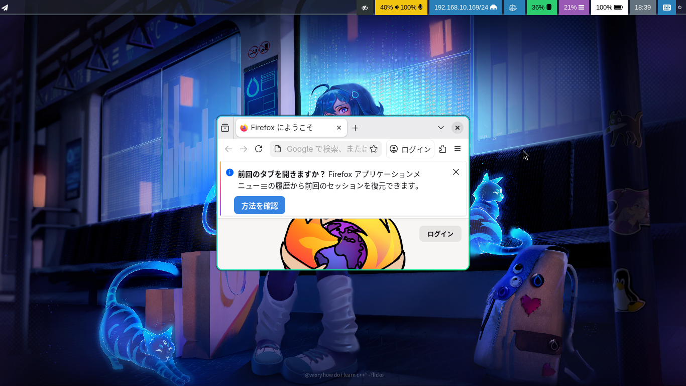 1. 概要 ブラウザとして、「Firefox」を使用します。 「Firefox」は、デフォルトでインストールされています。 2. 起動 「スタート」→「インターネット」→「Firefox」