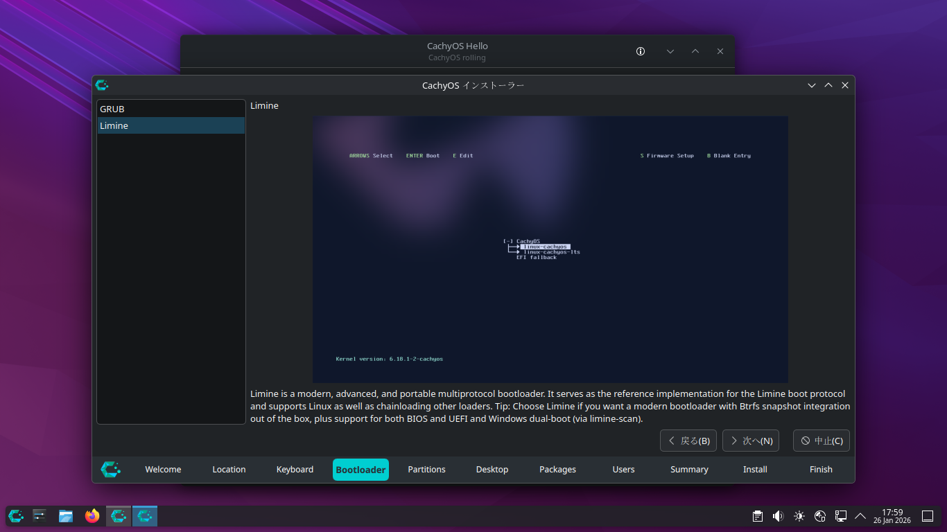 ここに、「Grub」「Limine」の選択肢が移動しているわけですな。