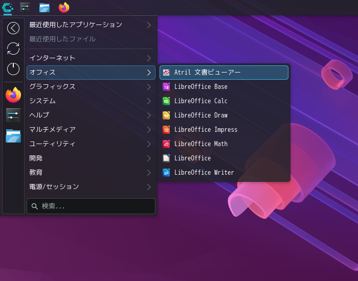 ドキュメントビューアとして、「Atril」を使用します。