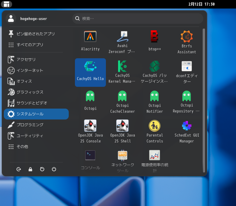 「スタート」→「システムツール」→「CachyOS Hello」