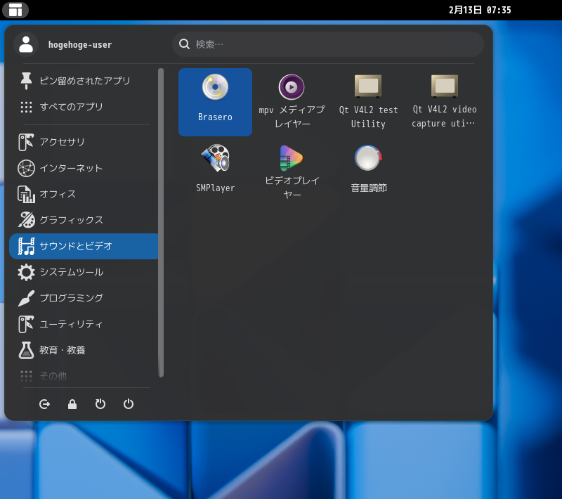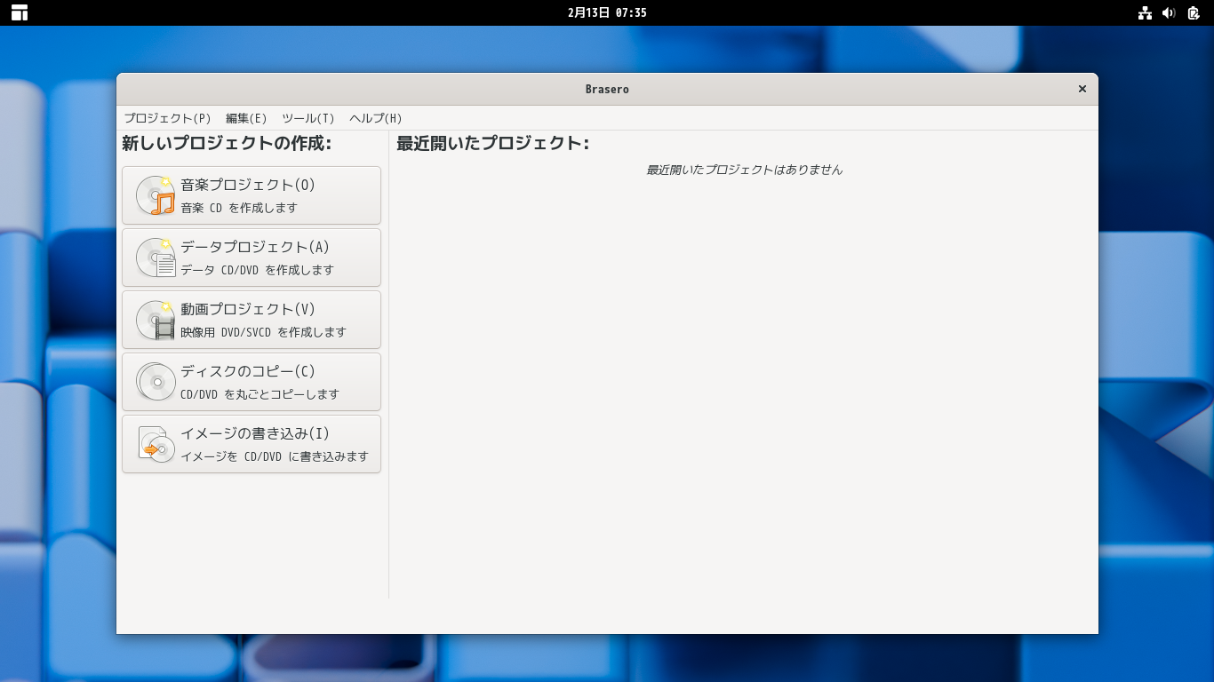 1. 概要 光ディスクライティングソフトとして、「Brasero」を使用します。 2. インストール 「Pamac」で、「brasero」を検索して、インストールします。 3. 起動 「スタート」→「サウンドとビデオ」→「Brasero」