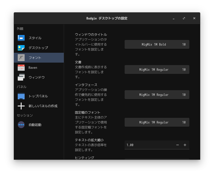 デフォルトのデスクトップ・メニューです。