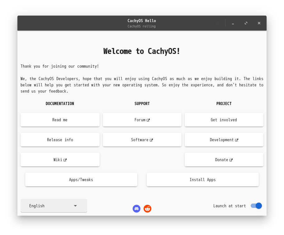 ログインするたびに「CachyOS Hello」というダイアログが表示されます。