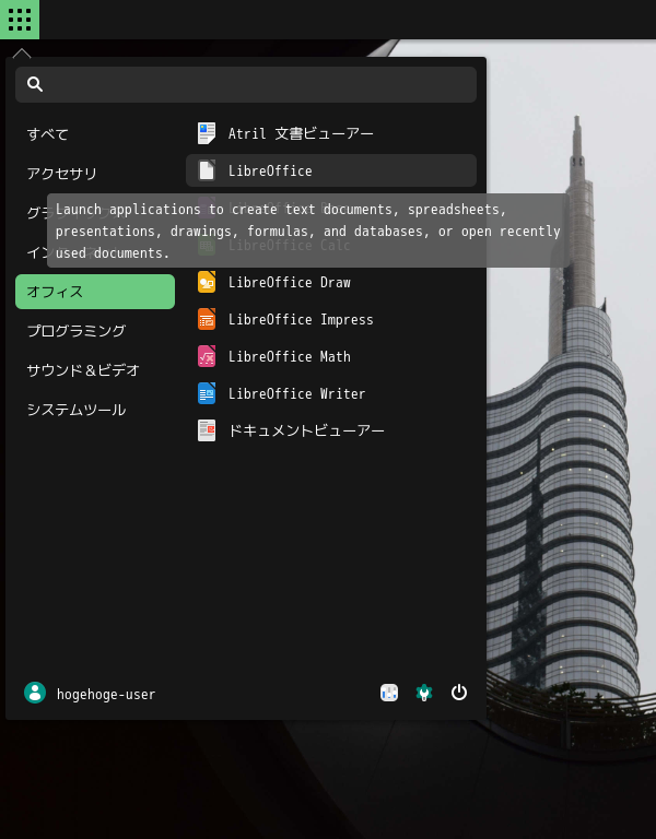 1. 概要 オフィススイートとして、「LibreOffice」を使用します。 2. インストール 「Pamac」で、「libreoffice-ja」を検索して、「libreoffice-still-ja」をインストールします。 3. 起動 「スタート」→「オフィス」→「LibreOffice」