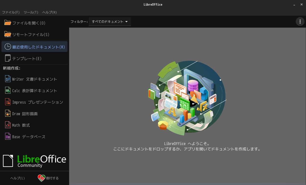 操作方法等については「オフィススィート LibreOffice」をご参照ください。